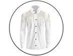 Introducing the Celestial Cascade Men's Dress Shirt, where timeless style meets celestial charm. Choose between the ethereal White or the enigmatic Black, each shirt is a canvas for the shimmering cascade of gold stones that rain down from shoulder to chest. Crafted from the...- $189.99 USD