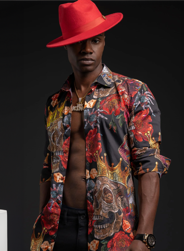 This shirt is a bold and sophisticated piece, featuring a luxurious black base adorned with intricate gold and silver floral baroque patterns. The design exudes elegance, making it perfect for formal occasions, evening outings, or a statement look. The combination of rich metallic tones...- $189.99 USD