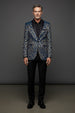 The Midnight Spark Tuxedo Blazer defines modern formal elegance. Crafted from a premium fabric blend with luxurious golden thread detailing, this statement piece features an abstract nature-inspired pattern that catches the light with every movement.