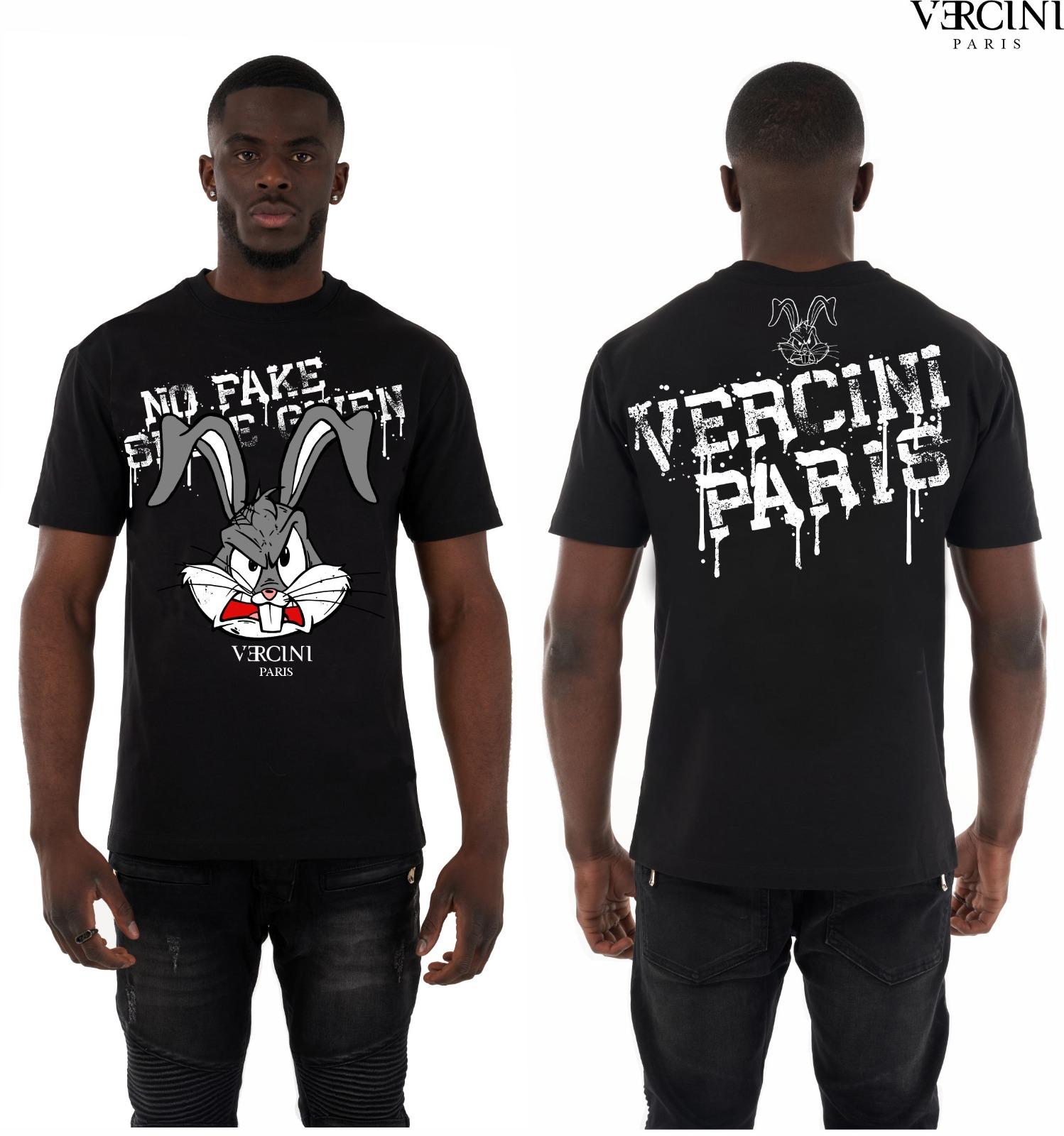 Make a fearless statement with this limited-edition Vercini black t-shirt, featuring a striking Bugs Bunny design made of precision-placed crystals and a rebellious “No Fake Given” slogan across the chest. Crafted from a premium blend of 95% cotton and 5% elastane, this shirt offers both structure and stretch for maximum comfort and style.