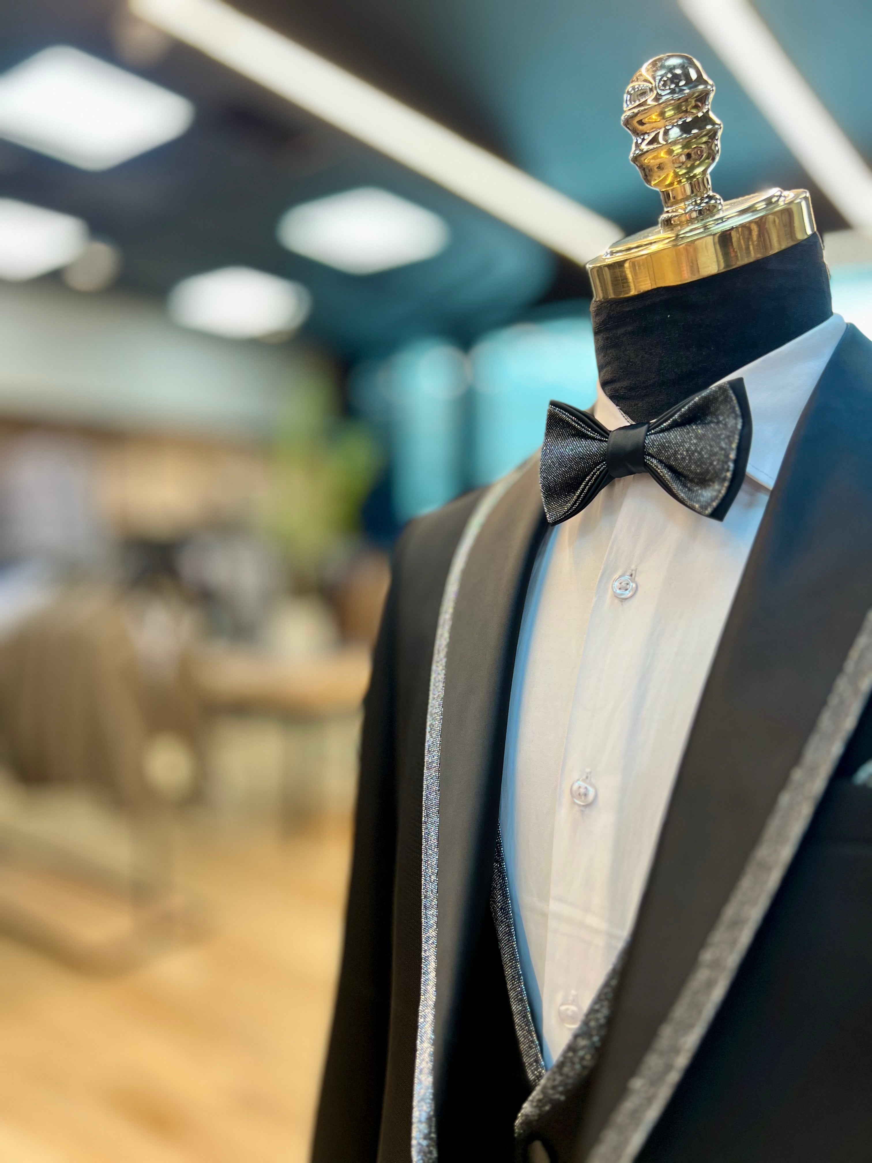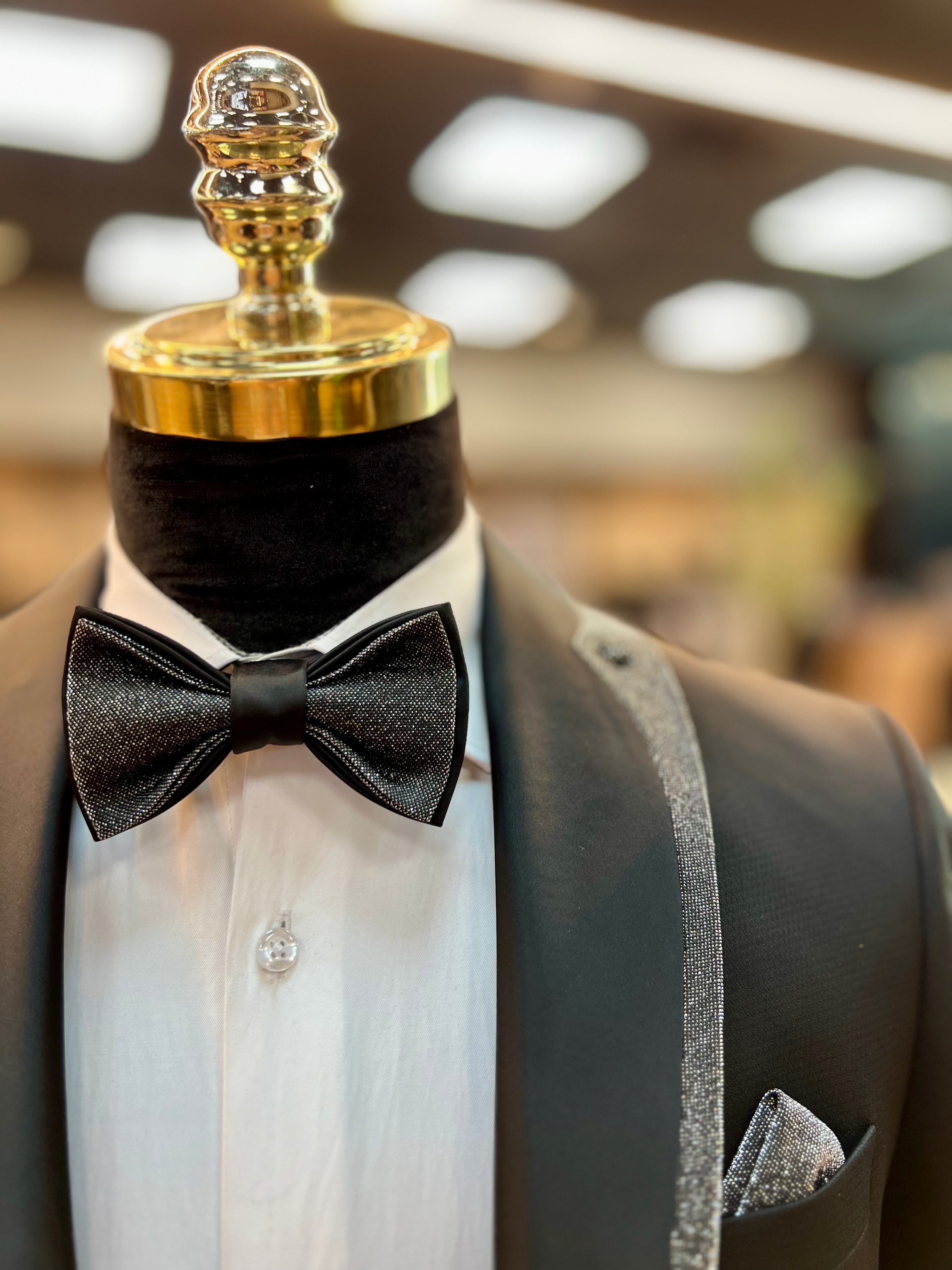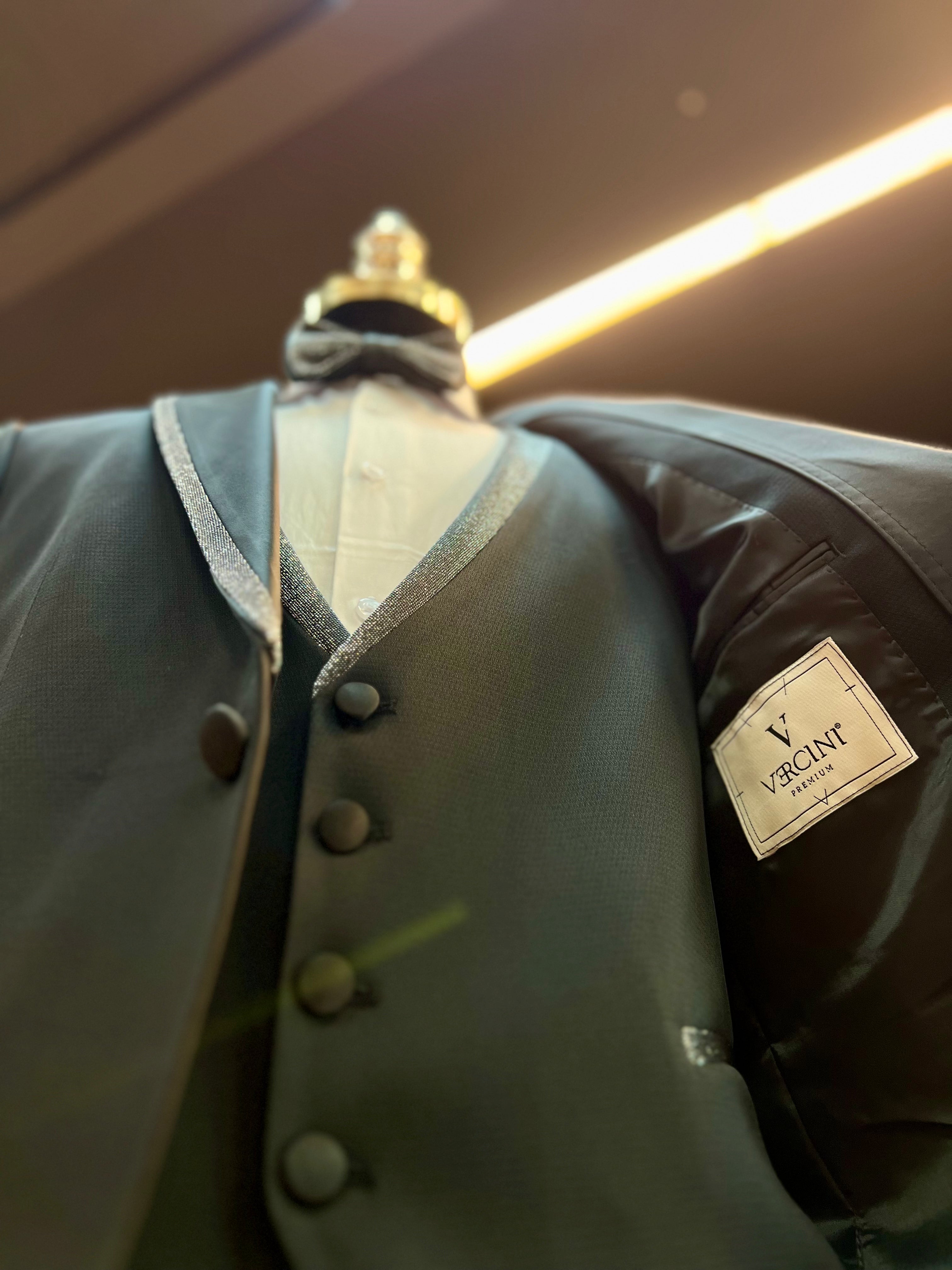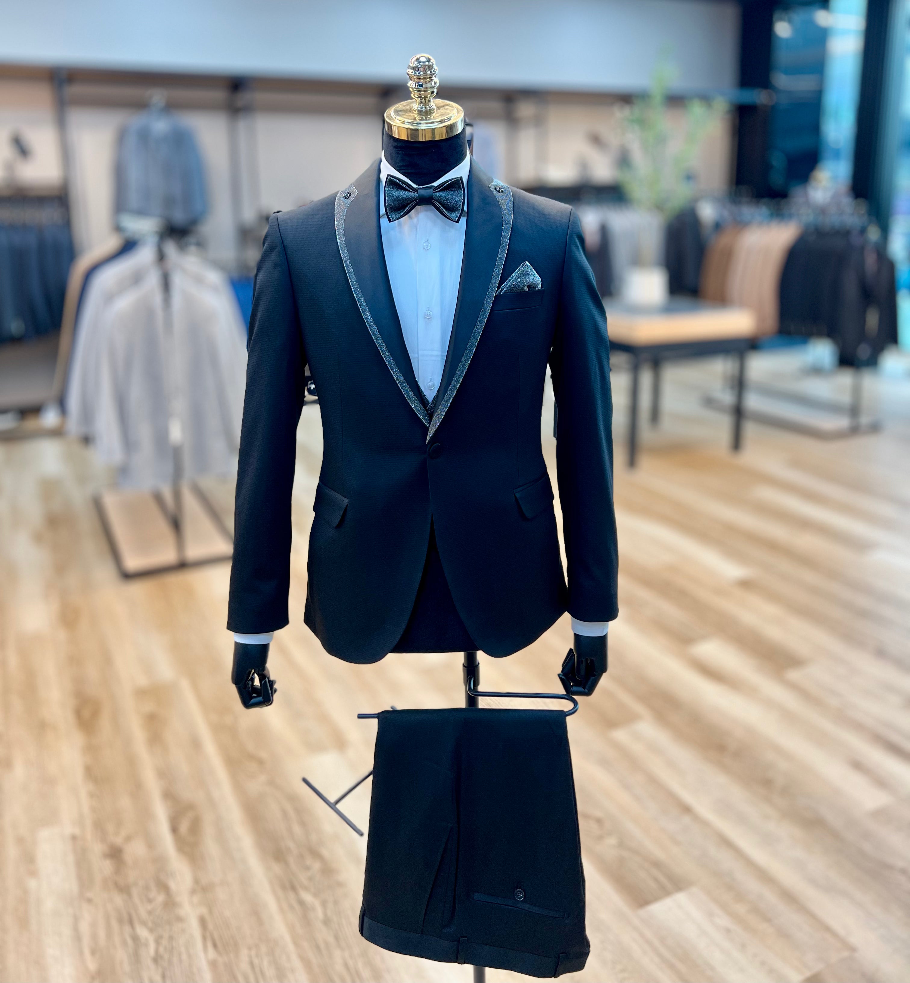 Turn heads at any evening event with the Vercini Midnight Spark Tuxedo jackets . This striking black tuxedo jacket features a refined shawl lapel in satin and a subtle shimmer finish throughout the fabric that catches the light with every move—perfect for black-tie affairs,...