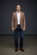 A refined herringbone blazer in warm cinnamon tones, woven from premium wool blend with subtle multicolor depth. The classic pattern and tailored construction deliver timeless versatility for business meetings, formal occasions, and elevated everyday wear.