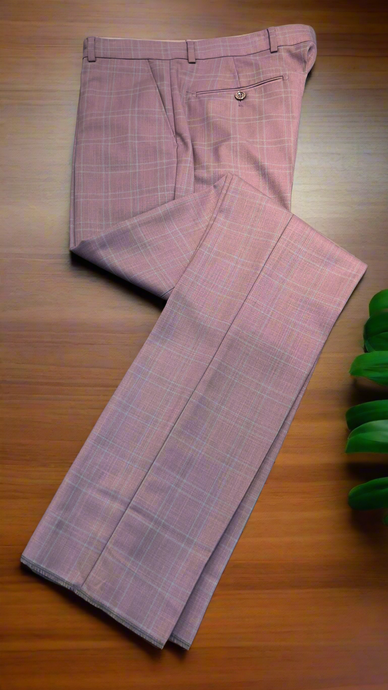 Elevate your wardrobe with these stylish pleated pants in a rich burgundy hue. Crafted from a comfortable and durable blend of 67% polyester and 33% viscose, these pants offer a perfect balance of structure and softness. The pleated front adds a touch of sophistication, while the smooth, breathable fabric ensures all-day comfort. Ideal for both formal settings and smart-casual looks, these trousers bring a refined edge to any outfit.#VerciniStyle #PlaidDressPants #BurgandyAndGrayPlaid