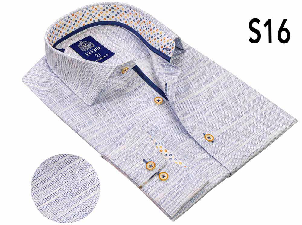 Experience the ultimate blend of comfort and style with our VERCINI PREMEUIM SHIRT. Made with 100% cotton, this shirt features a stylish combination of lavender, lt. gray, and navy, along with trim and buttons in beige and brown.