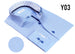 Refresh your look with the Vercini Y03 Sky Blue Microdot Dress Shirt — a crisp, modern essential featuring a subtle microdot texture for added depth and style. The shirt is highlighted by a white inner collar trim with navy geometric tile patterns, offering a sophisticated contrast that adds personality to your outfit. Designed with tonal blue buttons and a sleek tailored fit, this shirt is ideal for both professional settings and stylish casual wear.