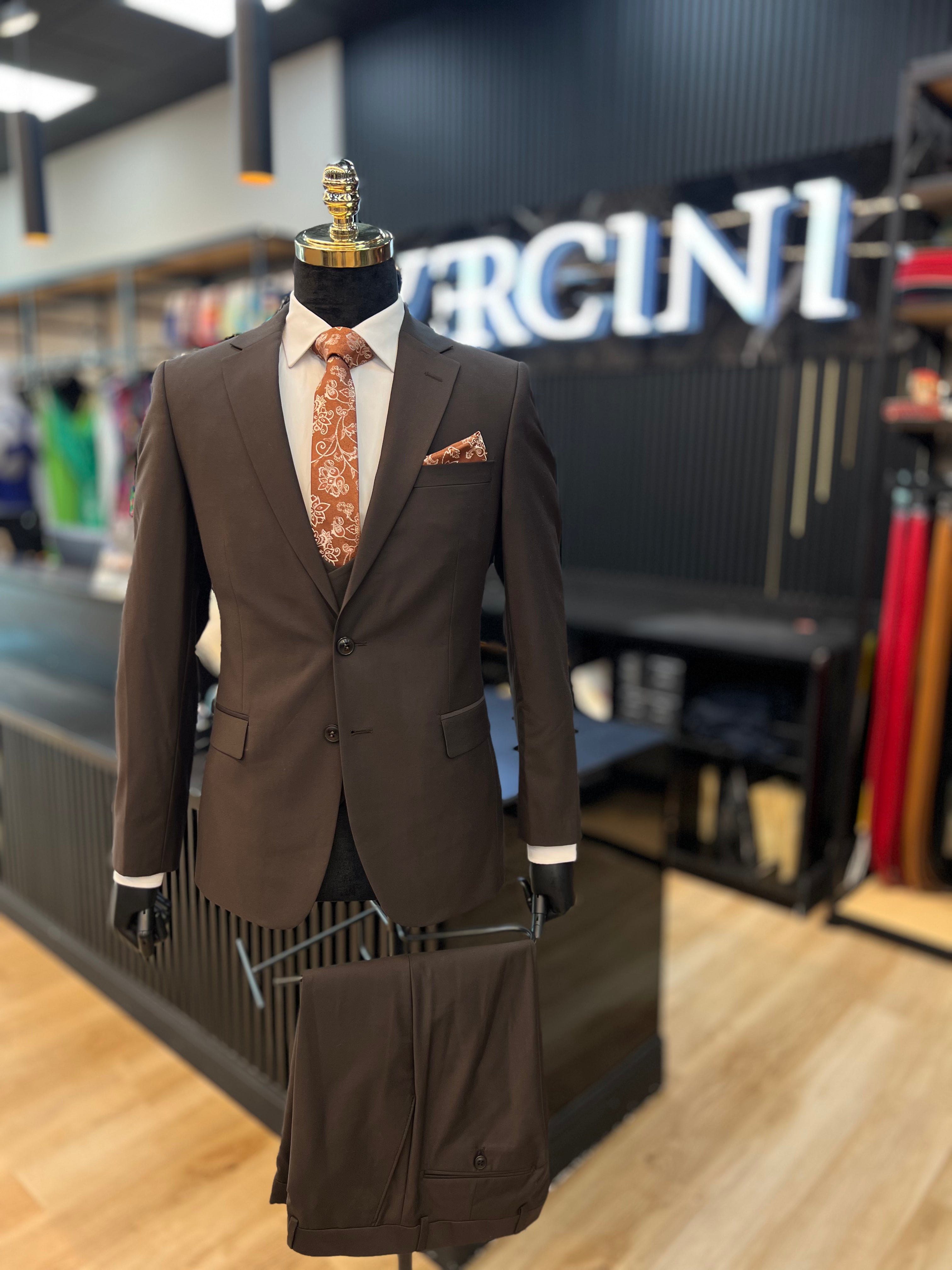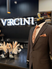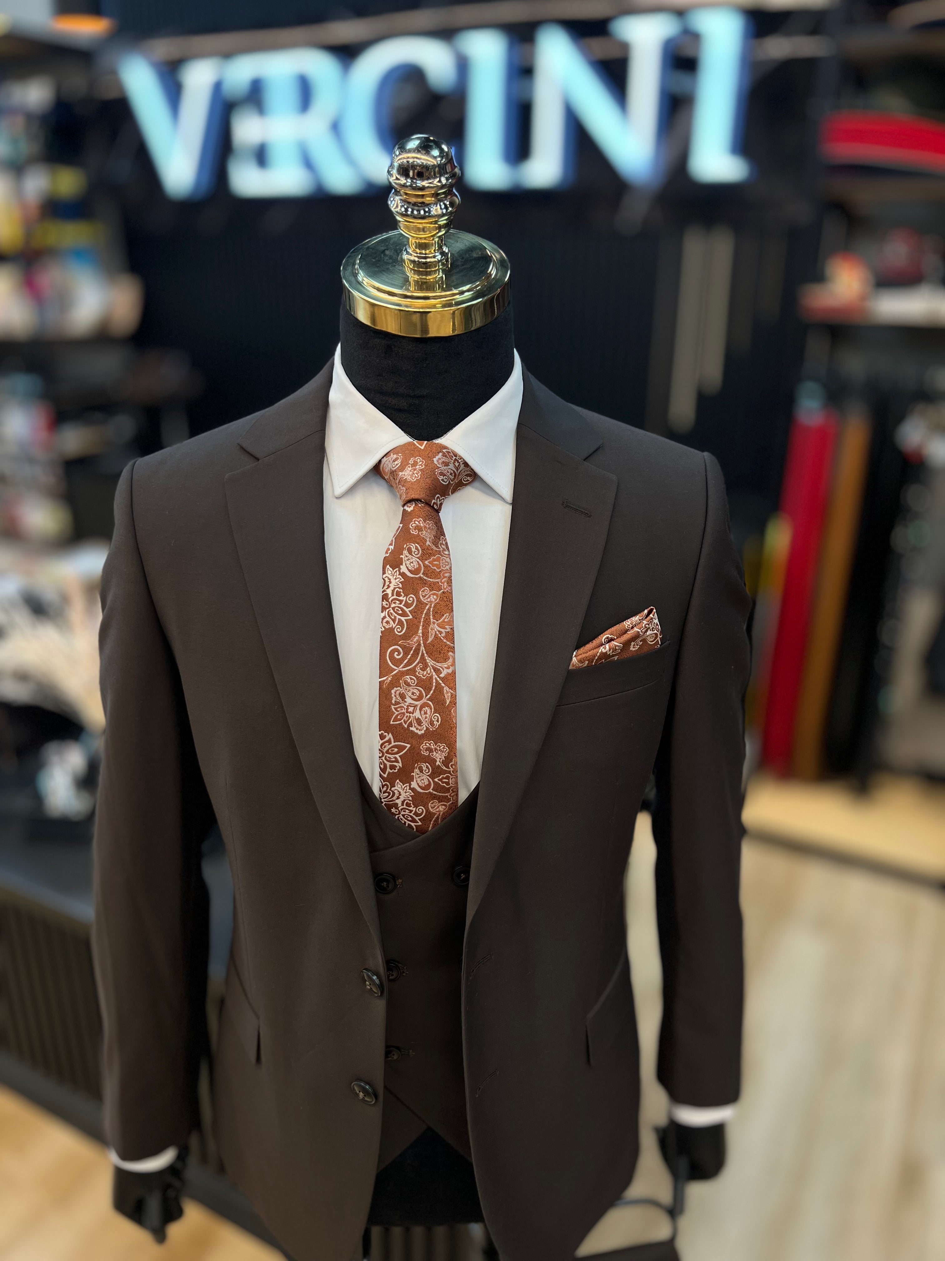 Step into timeless elegance with the Classic Brown Suit by Vercini. This modern slim fit, 3-piece suit is perfect for any formal or semi-formal occasion. Made in Turkey, its fine craftsmanship exudes sophistication and style. Elevate your wardrobe with this must-have suit for a polished and timeless look.