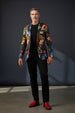 Our collection features an impressive variety of patterns and themes. Choose from elegant floral and butterfly motifs in navy blues with vibrant pops of yellow, orange, and red, or make a dramatic statement with our multicolor abstract brushstroke designs. For those who appreciate luxury with edge, our black floral blazers feature stunning red roses, blue blooms, and gold baroque details, while our navy lion and leopard print pieces showcase vibrant multicolor big cat portraits in yellow, orange, pink, and purple against rich navy backgrounds.